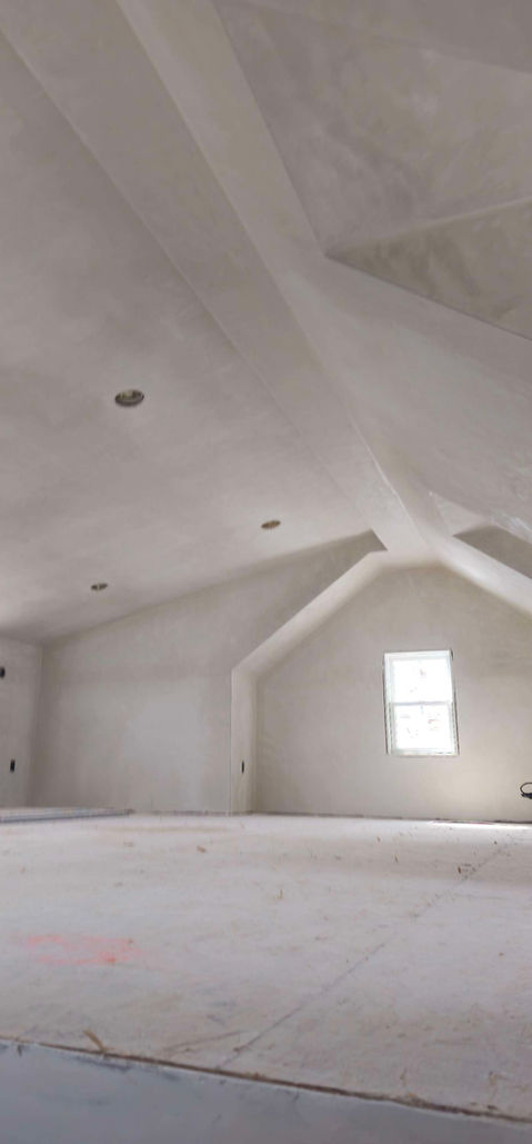 Our most cost-effective style of Plastering. A Two-Coat system is applied to seams, joints, corners and screws, then a light flat Skip-finish applied.